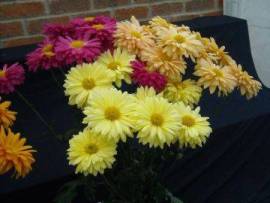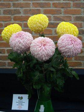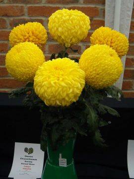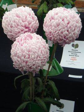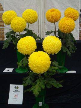 Disappointing number of exhibits, but yet again Vin & Joan Aldread took the silver medal for the best exhibit and bronze medal for best vase in show Primrose Enbee Wedding. Gil Hardy best vase of medium disbuds and Terry Hubbard best large flowered in show and best in single vase classes with Billy Bell.